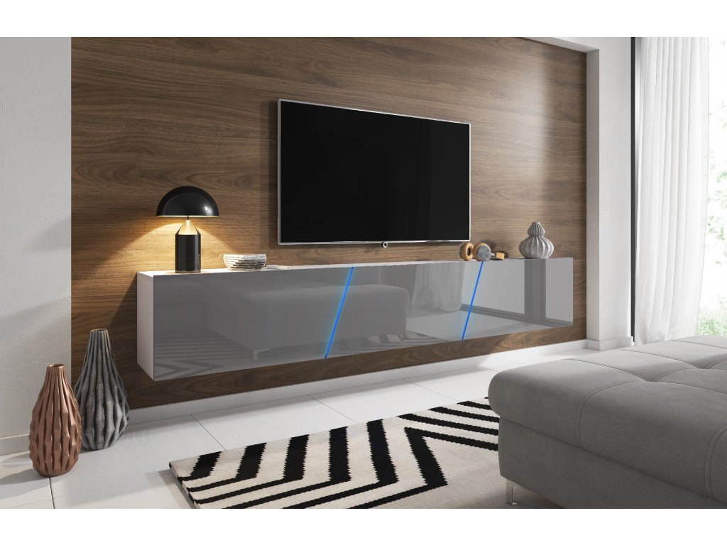 TV stolek SLANT 240 cm - bílá / šedá